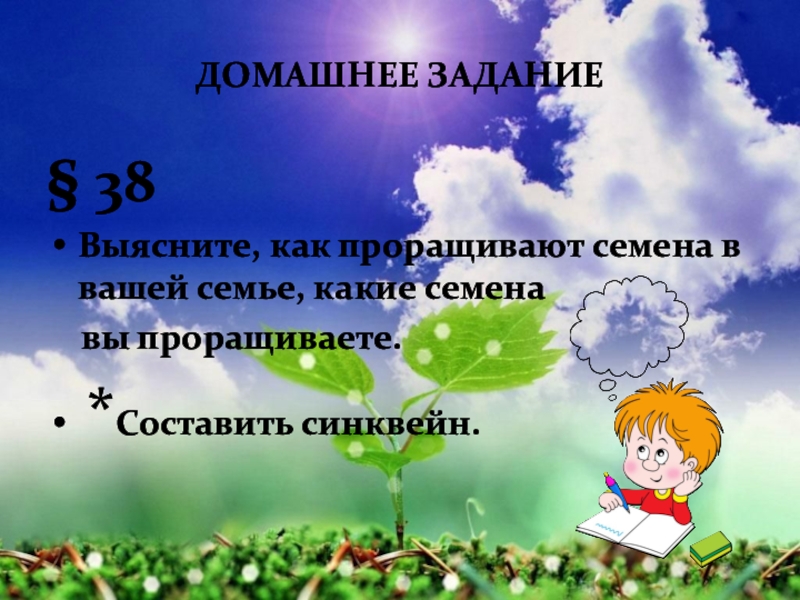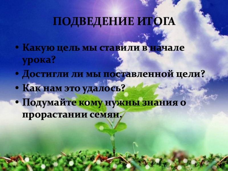 семени. Чем больше веществ, тем быстрее прорастает семя. Для посева необходимо отбирать крупные, здоровые семена.