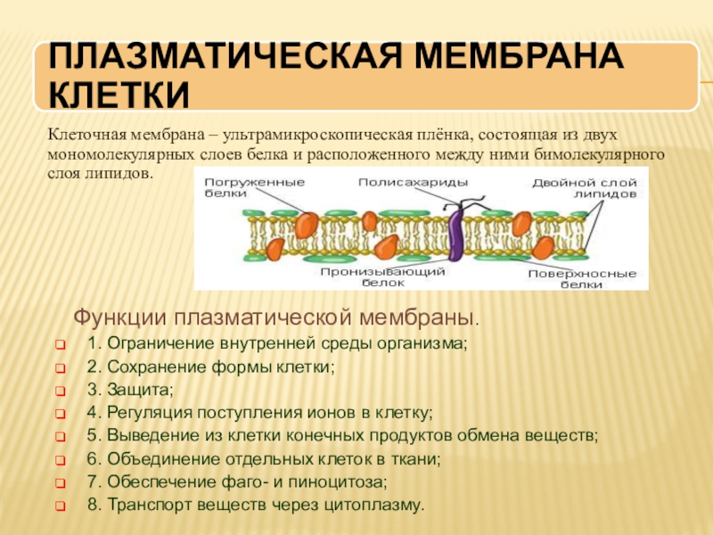 5. Выведение из клетки конечных продуктов обмена веществ;