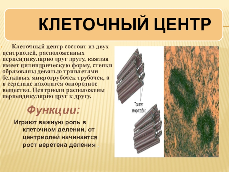 Играют важную роль в клеточном делении, от центриолей начинается рост веретена деления .