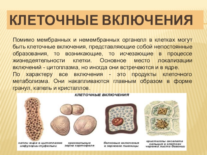 Вакуоли обычно отсутствуют, в некоторых клетках развиты незначительно.