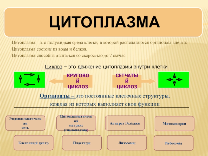 Цитоплазма – это полужидкая среда клетки, в которой располагаются органоиды клетки.