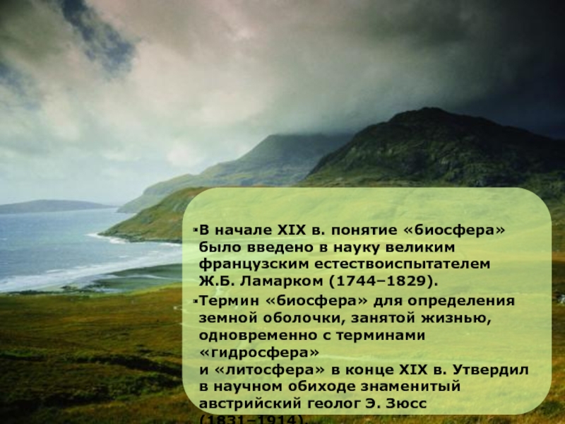 сфер небесном теле, а именно – органическая жизнь... На поверхности материалов можно выделить самостоятельную биосферу...» Создав новый термин, которому было суждено такое блестящее будущее, Зюсс не дал ему научного определения. Автор современного учения о биосфере В.И. Вернадский (1863–1945) стал употреблять термин «биосфера» с 1911 г., но впервые дал его определение в 1923 г. и с тех пор не менее 15 раз его уточнял, подчеркивая, что биосфера – это «особая охваченная жизнью оболочка» Земли – область распространения живого вещества на планете.