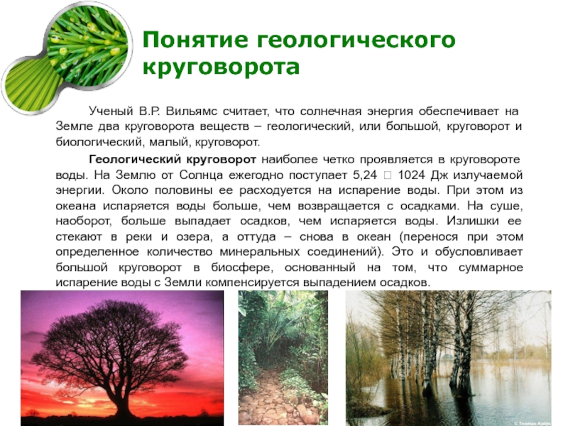 Ученый В.Р. Вильямс считает, что солнечная энергия обеспечивает