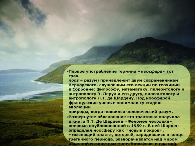 Слайд 20Первое употребление термина «ноосфера» (от греч.