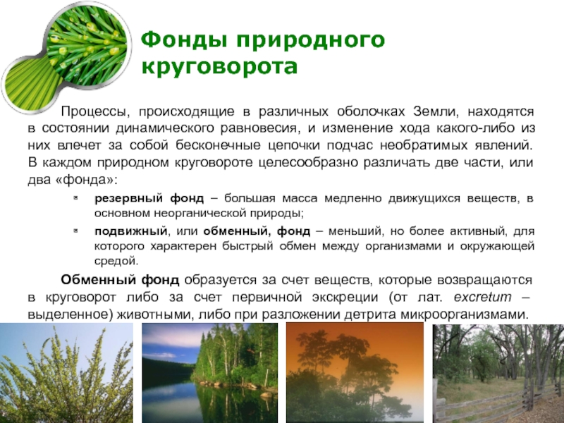 В каждом природном круговороте целесообразно различать две части, или два «фонда»: