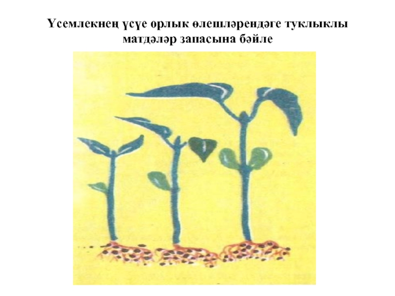 Слайд 9Үсемлекнең үсүе орлык өлешләрендәге туклыклы матдәләр запасына бәйле