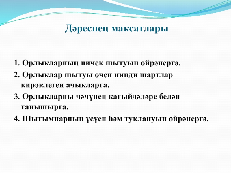 Дәреснең максатлары1. Орлыкларның ничек шытуын өйрәнергә.2.