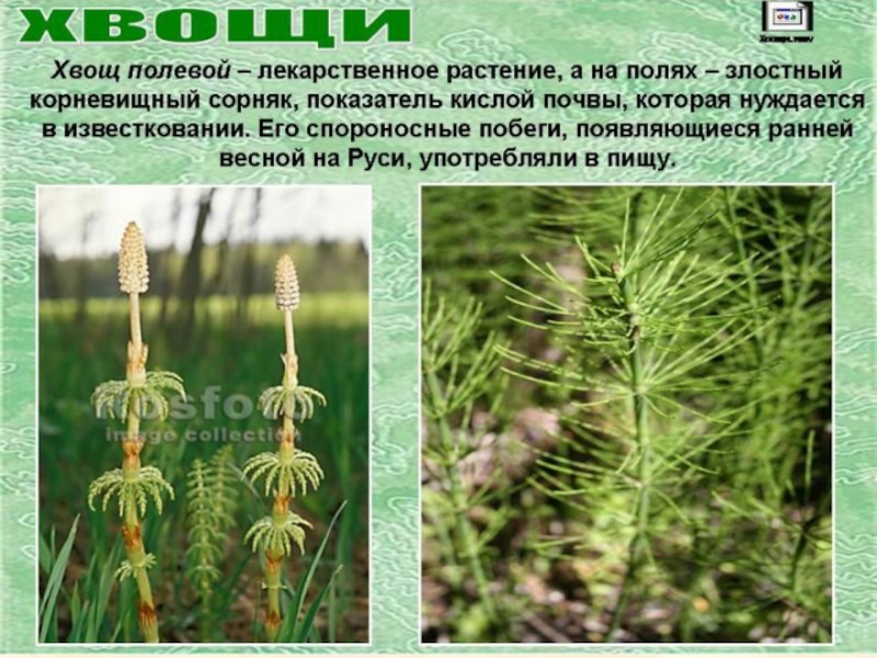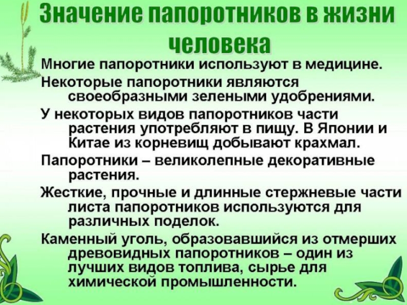 Встречаются наземные формы (орляк, щитовник) и водные формы (сальвиния), которые обитают в болотах и стоячих водоемах.