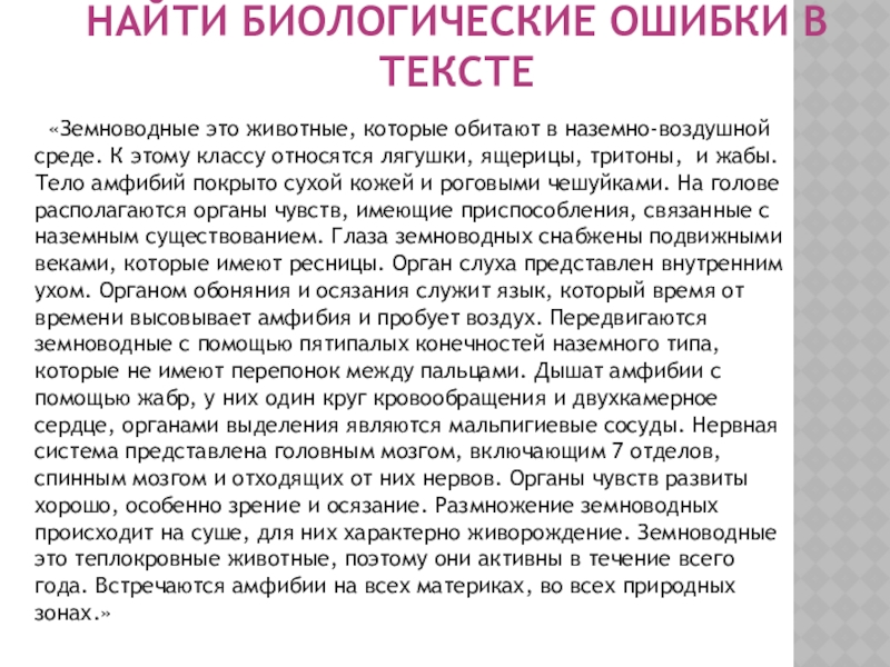 Слайд 78НАЙТИ БИОЛОГИЧЕСКИЕ ОШИБКИ В ТЕКСТЕ