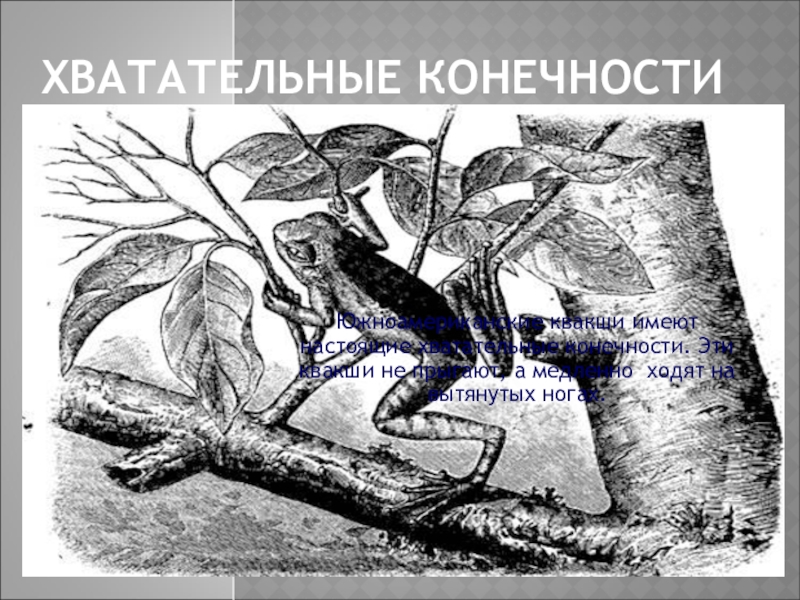 Южноамериканские квакши имеют настоящие хватательные конечности. Эти квакши не прыгают,