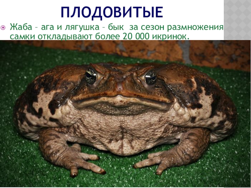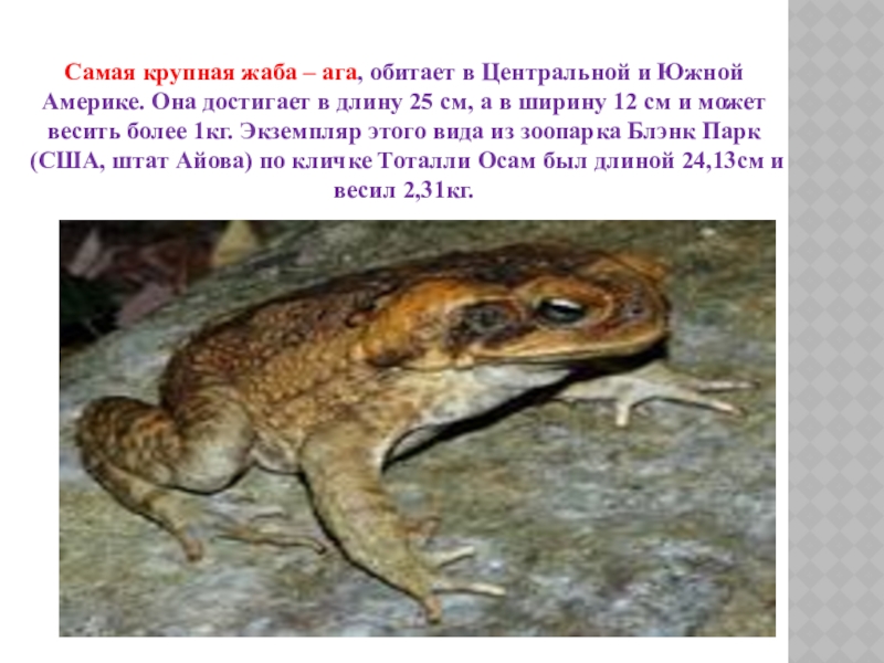 Слайд 75Самая крупная жаба – ага, обитает в Центральной и Южной Америке.