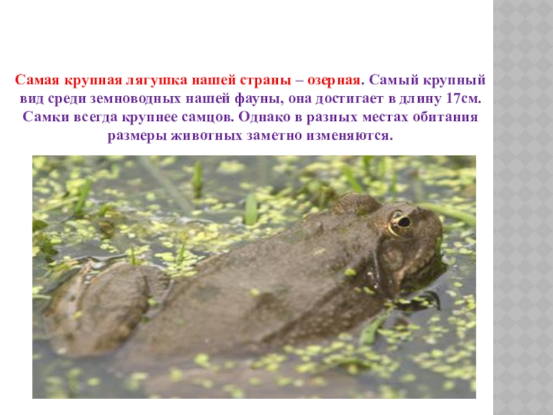 Слайд 74Самая крупная лягушка нашей страны – озерная. Самый крупный вид среди