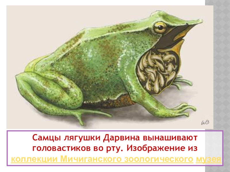 Слайд 65Самцы лягушки Дарвина вынашивают головастиков во рту. Изображение из коллекции Мичиганского