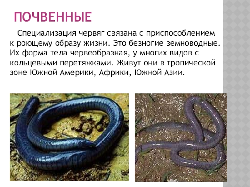 жизни. Это безногие земноводные. Их форма тела червеобразная, у многих видов с кольцевыми перетяжками. Живут они в тропической зоне Южной Америки, Африки, Южной Азии.