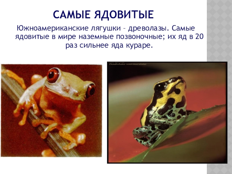 Южноамериканские лягушки – древолазы. Самые ядовитые в мире наземные позвоночные;