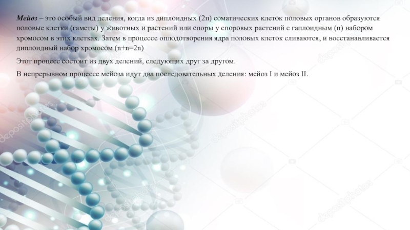 Происходящие в мейозе перекрест хромосом, обмен участками, а также независимое расхождение каждой пары гомологичных хромосом определяют закономерности наследственной передачи признака от родителей потомству.