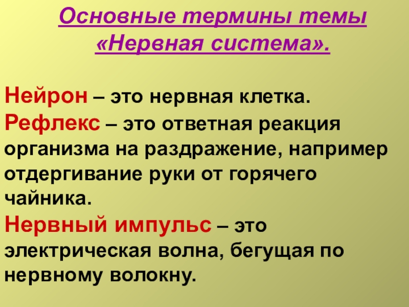 ответная реакция организма на раздражение, например отдергивание руки от горячего чайника.