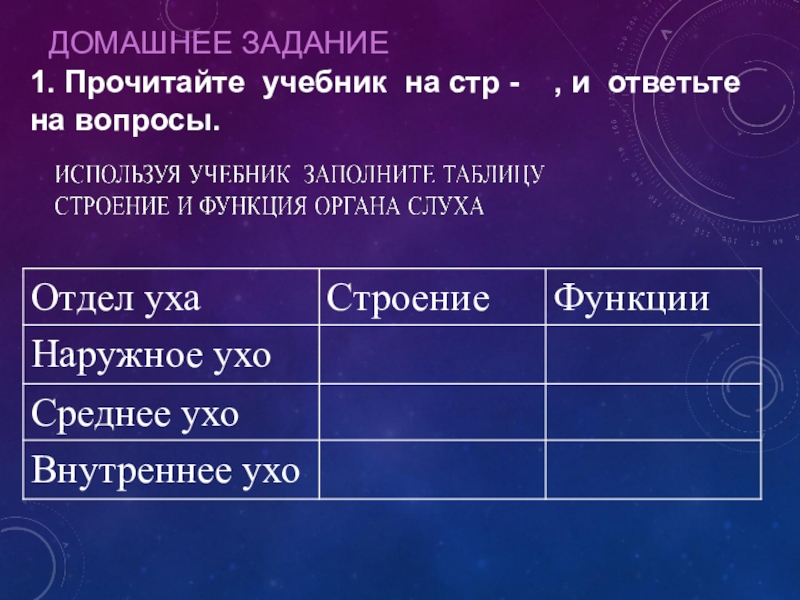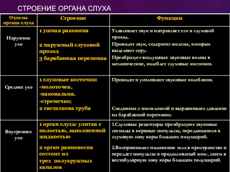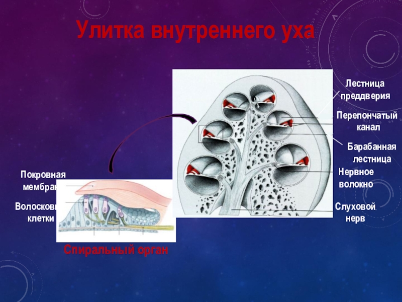 1 орган слуха: улитка с полостью, заполненной жидкостью