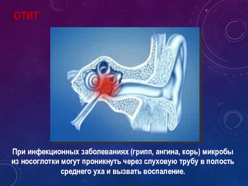 Соединена с носоглоткой и выравнивает давление на барабанной перепонке.