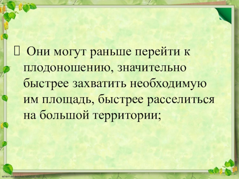 Слайд 23 Они могут раньше перейти к плодоношению, значительно быстрее захватить необходимую