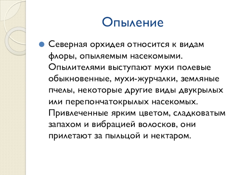 Северная орхидея относится к видам флоры, опыляемым насекомыми. Опылителями выступают мухи