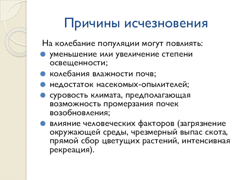 влияние человеческих факторов (загрязнение окружающей среды, чрезмерный выпас скота, прямой сбор цветущих растений, интенсивная рекреация).