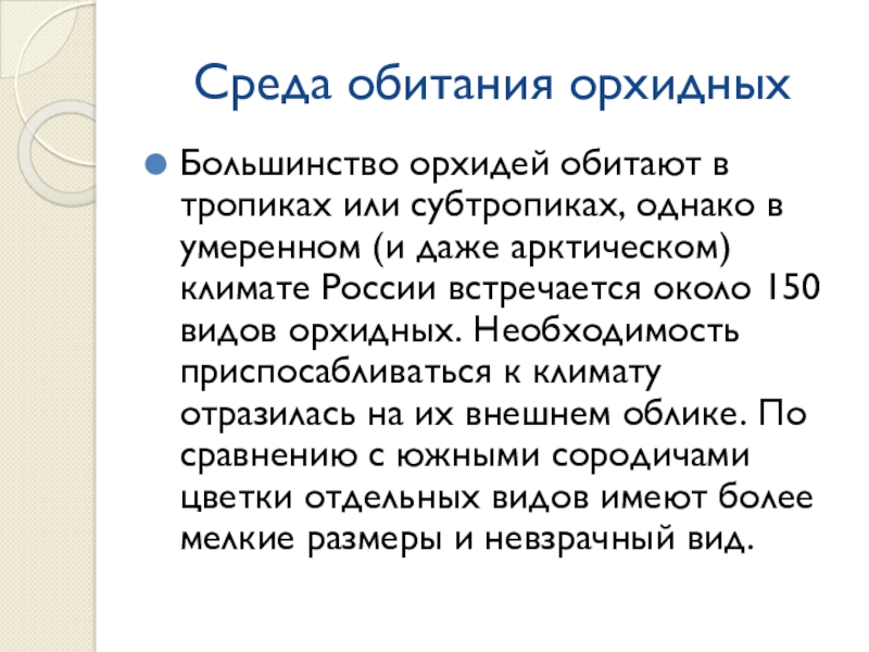 Большинство орхидей обитают в тропиках или субтропиках, однако в
