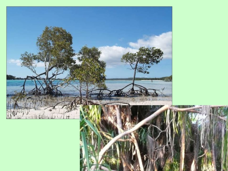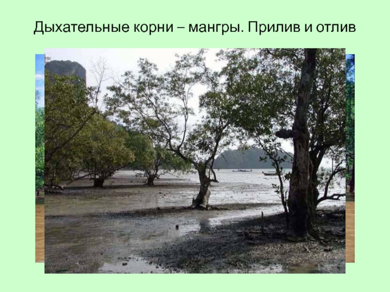 Слайд 21Дыхательные корни – мангры. Прилив и отлив