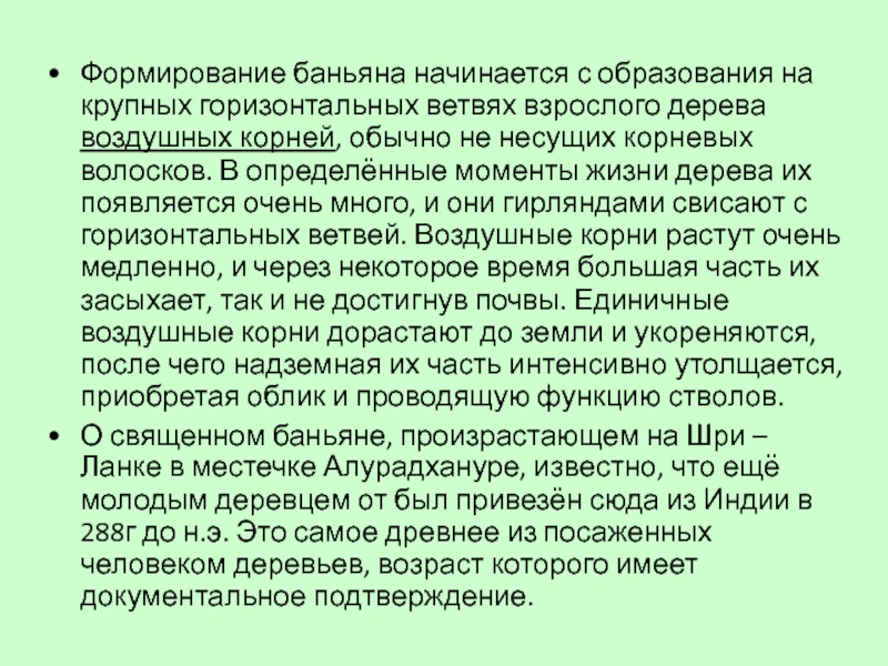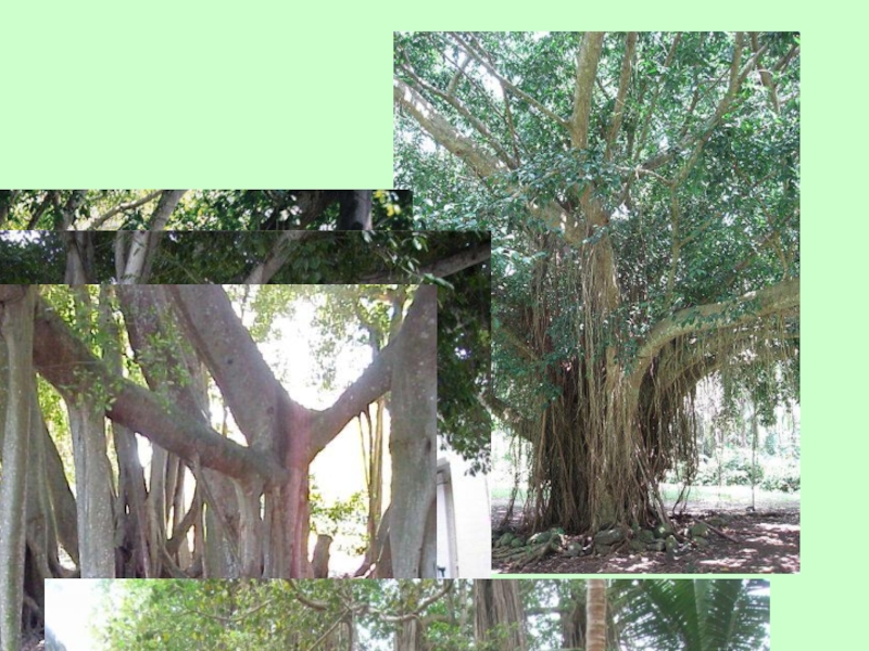 Слайд 13Формирование баньяна начинается с образования на крупных горизонтальных ветвях взрослого дерева