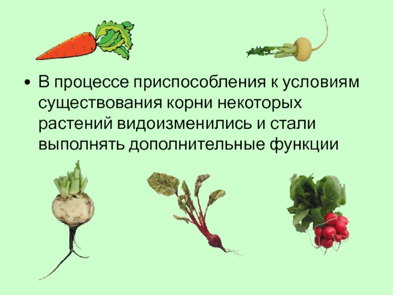 Слайд 6В процессе приспособления к условиям существования корни некоторых растений видоизменились и