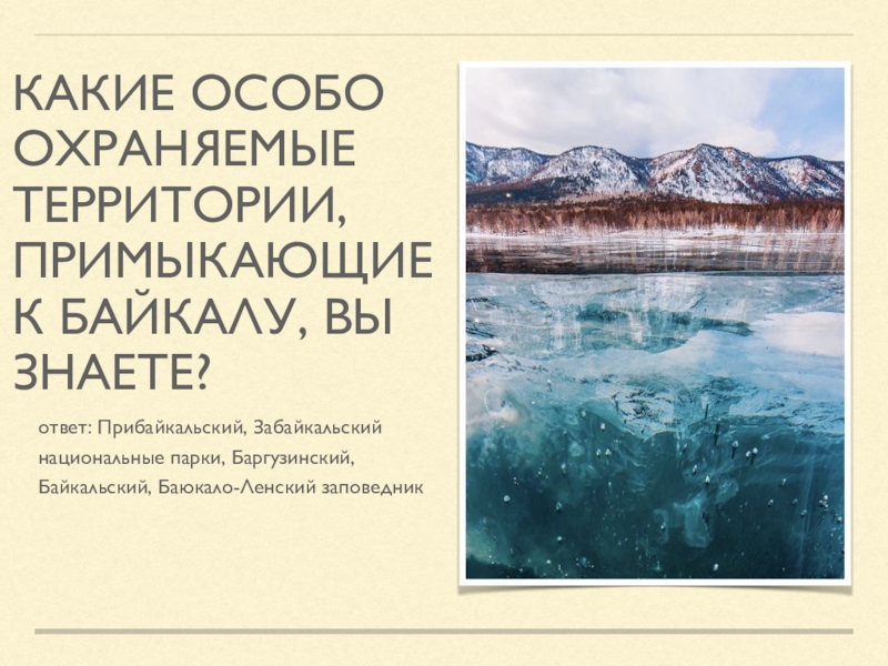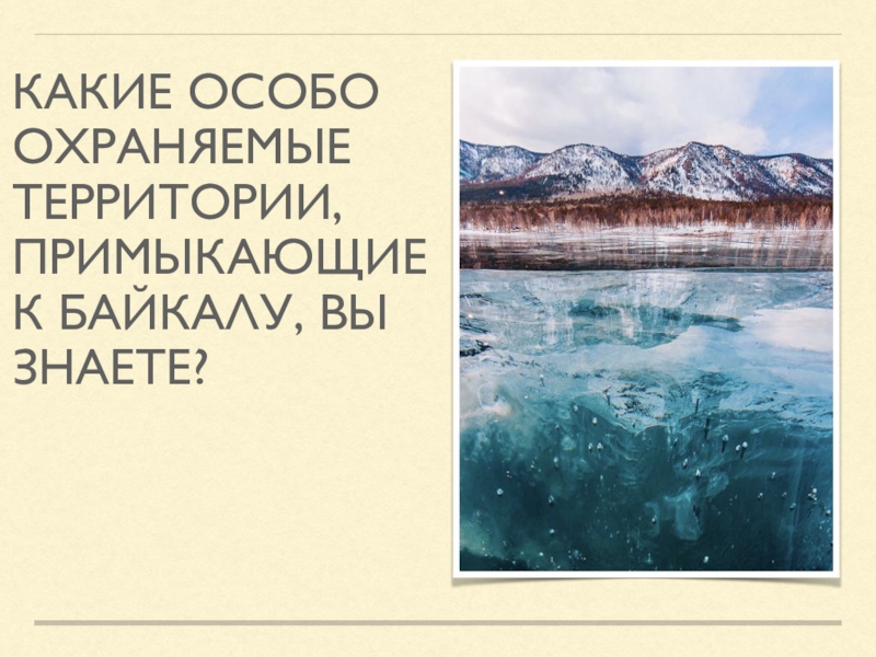 Слайд 42какие особо охраняемые территории, примыкающие к байкалу, вы знаете?