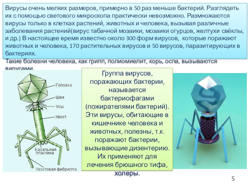 Группа вирусов, поражающих бактерии, называется бактериофагами (пожирателями бактерий).