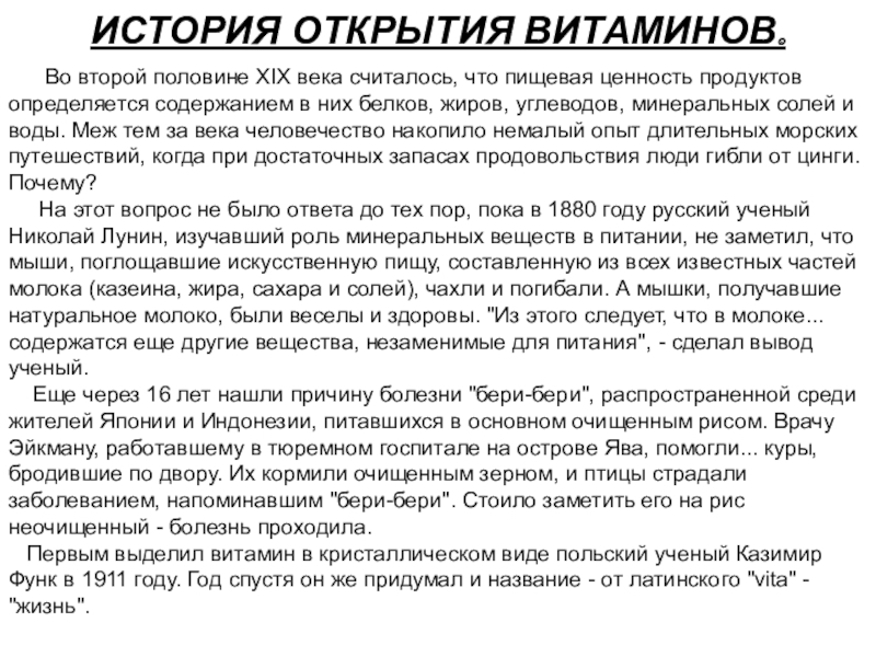 Авитаминоз — это специфическое нарушение обмена веществ, вызванное длительным отсутствием (дефицитом) какого-либо витамина в организме, которое приводит к определенному заболеванию или гибели организма.