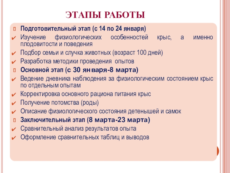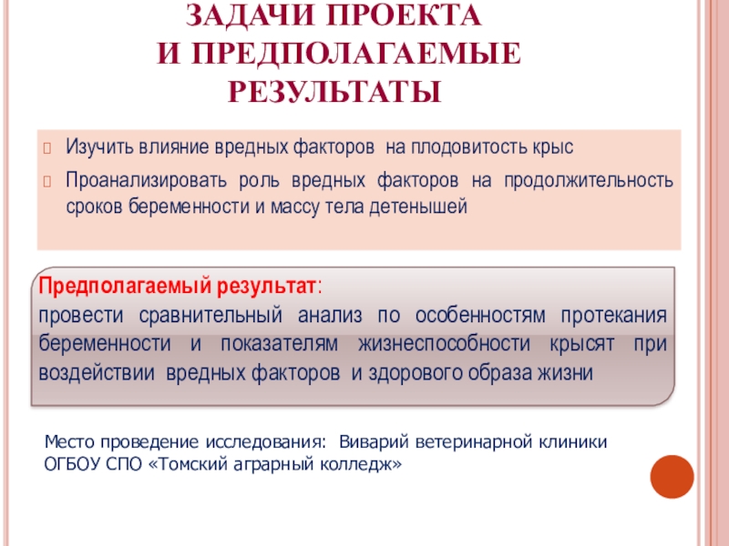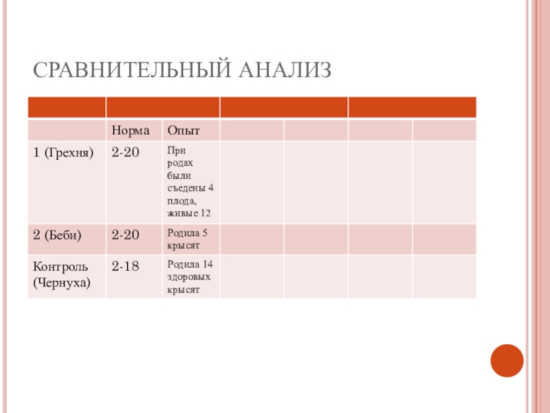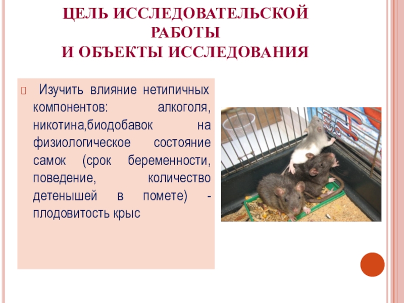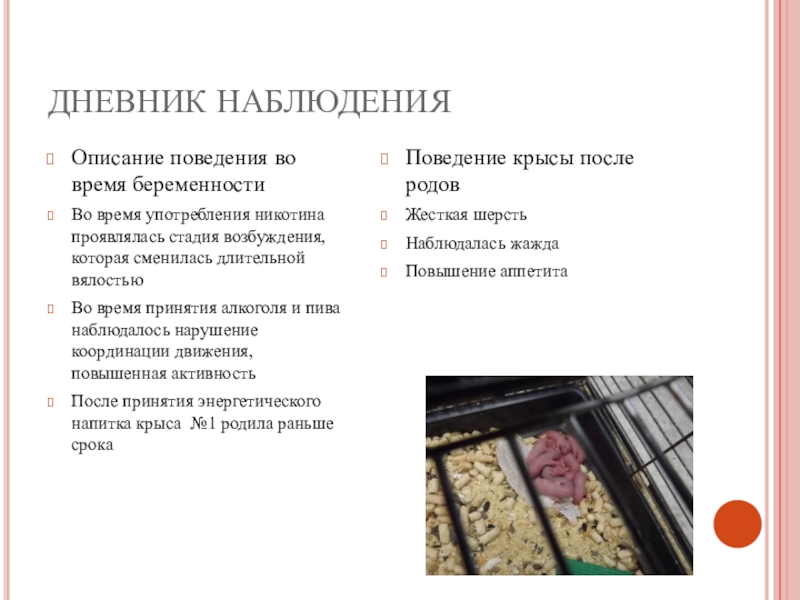 провести сравнительный анализ по особенностям протекания беременности и показателям жизнеспособности крысят при воздействии вредных факторов и здорового образа жизни