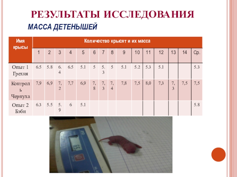 Крыса, питавшаяся правильно родила в срок 14 детёнышей с нормальной массой тела.