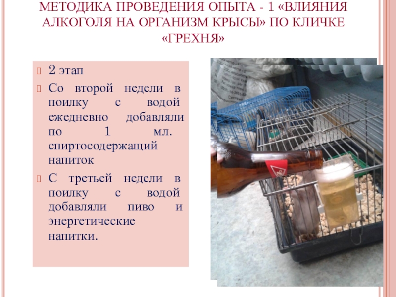 С третьей недели в поилку с водой добавляли пиво и энергетические напитки.