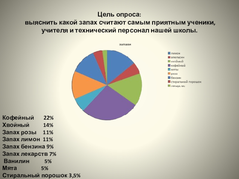 3)Провести опрос, с целью изучение любимых запахов учащихся, учителей и технического персонала нашей школы;