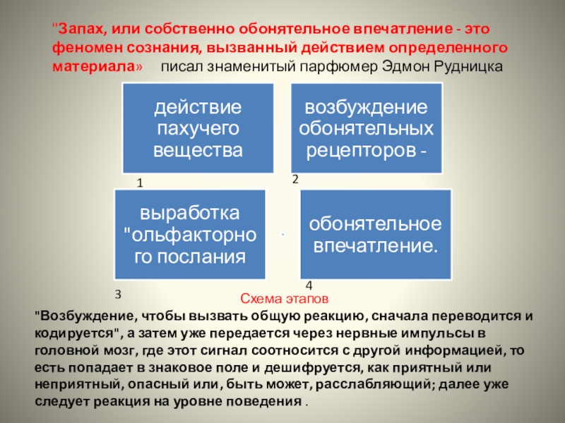 Слайд 14"Запах, или собственно обонятельное впечатление - это феномен сознания, вызванный действием