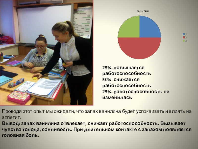 опыт мы ожидали, что запах ванилина будет успокаивать и влиять на аппетит.