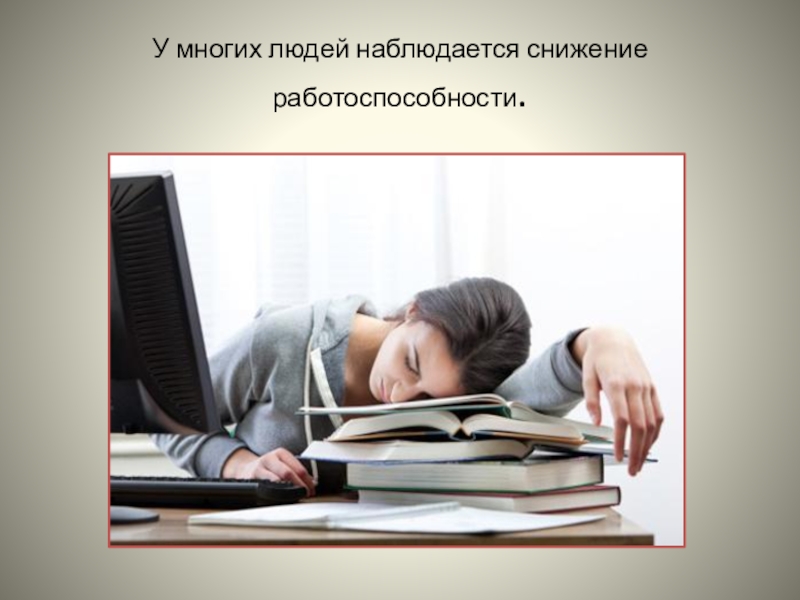 Слайд 4У многих людей наблюдается снижение работоспособности.