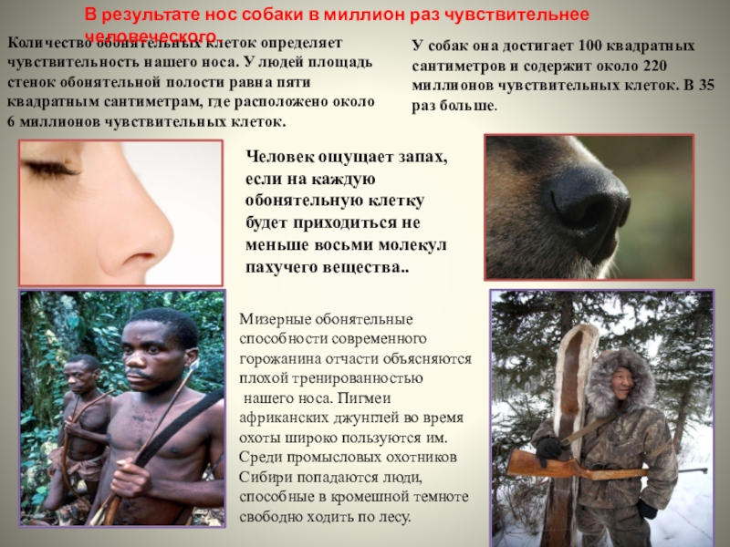 В результате нос собаки в миллион раз чувствительнее человеческого.