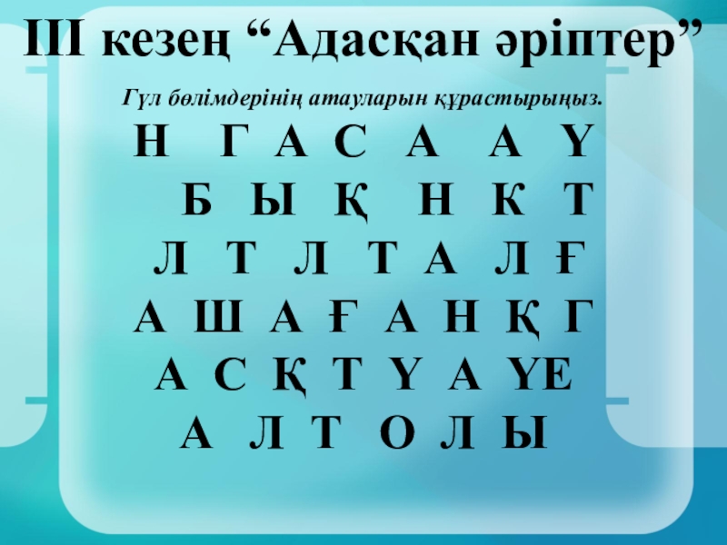 ІІІ кезең “Адасқан әріптер”
