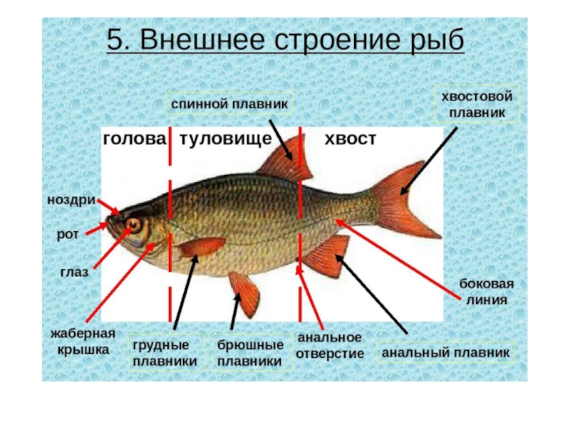 Слайд 10Внешнее и внутреннее строение рыб