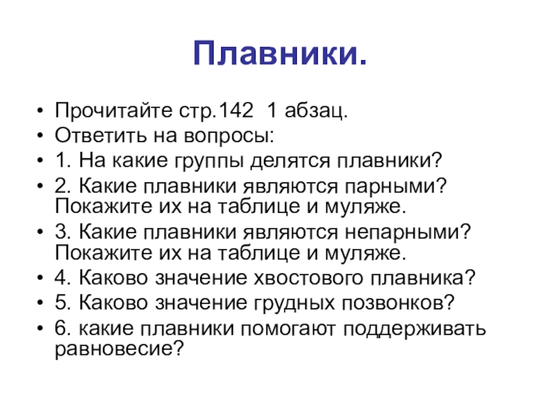 3. Какие плавники являются непарными? Покажите их на таблице и муляже.
