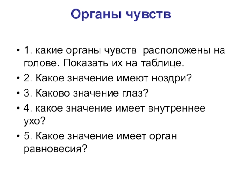 1. Какие органы расположены на голове. Покажите их на таблице.