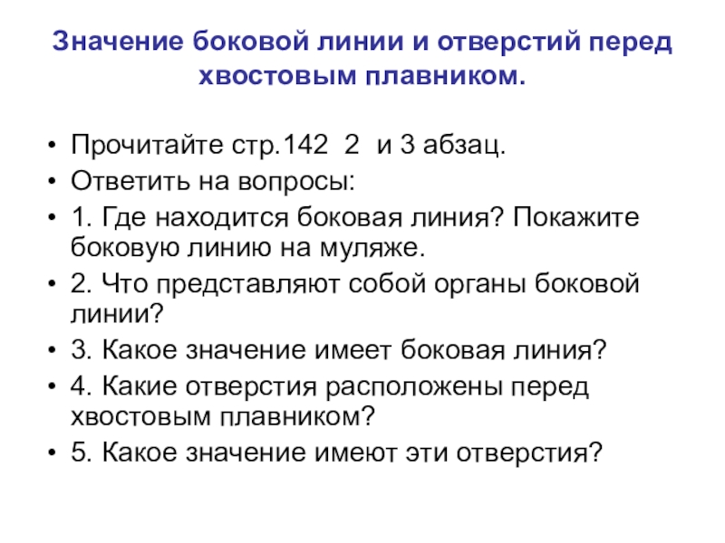 1. Где находится боковая линия? Покажите боковую линию на муляже.