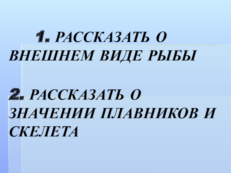 Слайд 3 1. РАССКАЗАТЬ О ВНЕШНЕМ ВИДЕ РЫБЫ 2. РАССКАЗАТЬ О