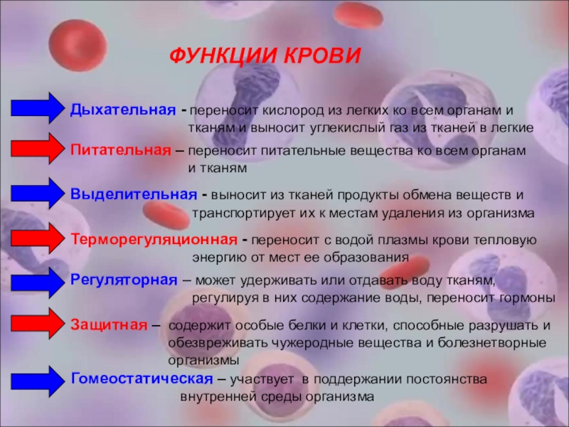 Терморегуляционная - переносит с водой плазмы крови тепловую