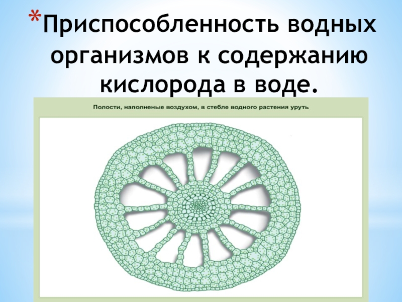 Слайд 14Приспособленность водных организмов к содержанию кислорода в воде.