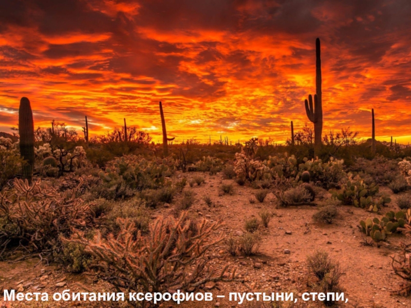 Слайд 10Места обитания ксерофиов – пустыни, степи, саванн.